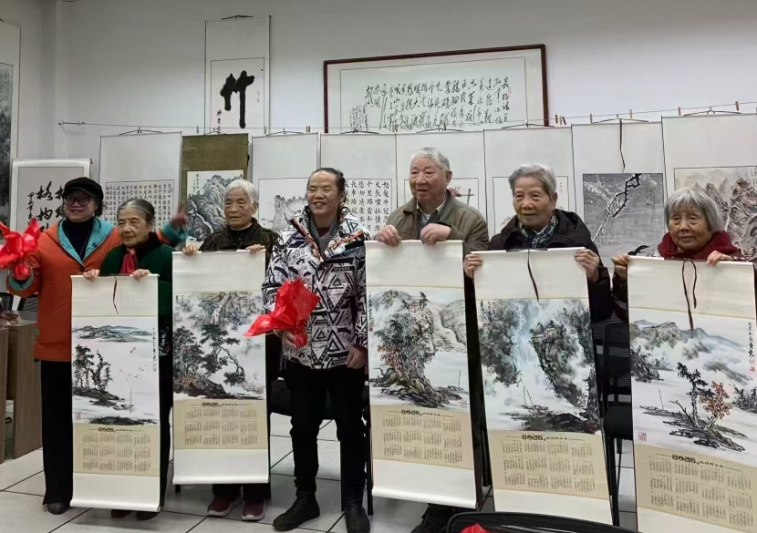 “看到老同志们创作出这么多具有一定艺术水准的作品,见证大家从入门到日渐精进,从心底感到高兴与自豪。教学相长,你们的学习热情也深深感染了我。”在热烈的气氛中,罗克良老师动情说道。他表示,将继续与学员们一道在水墨丹青的世界里探索、进步。随后,他将自己亲手绘制、融入一幅幅精美水墨画的新年挂历,赠予班上年逾八旬的五位学员,赢得阵阵掌声。