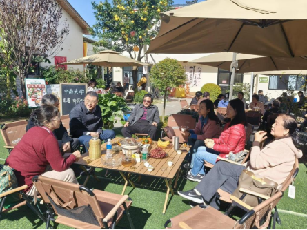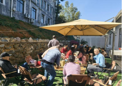 11月25日,小雪逢晴暖,寒消暖意长,风携草木香。本是朔风渐紧的节气,青天寨“童谣里”却被暖阳泼洒得满院明亮,将冬日清冷轻轻揉散。高等研究中心一年一度的离退休活动在此温情启幕,中心刘文胜、彭红、李卫、邹应萍四位领导与老同志们围炉叙旧、共话欢辰,现场暖意交织,温情萦绕,笑语漫过青瓦,飘向远山。