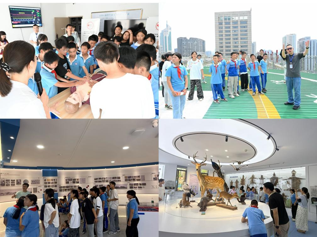 在医务人员的带领下,孩子们开启了他们的医学探索之旅。首站来到临床技能训练中心,他们认真聆听医务人员的讲解,积极学习心肺复苏等急救知识,初步领略医疗科技的神奇魅力。随后,孩子们来到门诊急诊医技楼,感受医院高效有序的运转流程。当登上直升机停机坪俯瞰医院全貌时,他们眼中充满了对医学救援的敬意与向往。在湘雅医学院院史馆,孩子们了解了湘雅百年发展历程和“公勇勤慎、诚爱谦廉”的精神内涵。最后,在中南大学生物标本馆,孩子们惊叹于生命形态的多样与精密,对生命的奥秘产生了浓厚的兴趣。