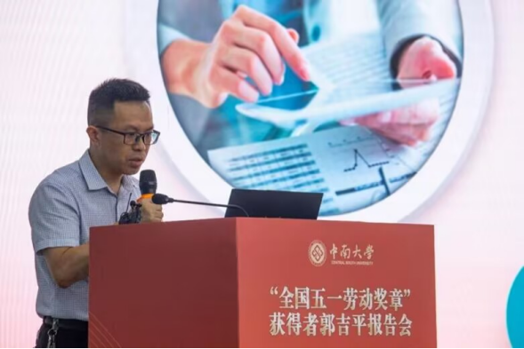 “全国五一劳动奖章”获得者、首届“国家卓越工程师团队”核心成员、土木工程学院2000校友郭吉平同志应邀重返校园,与向母校师生分享他17年来扎根一线、匠心筑梦的精彩故事。中南大学学生工作部副部长宋晓东、党委教师工作副部长刘湘云、校工会副主席张思纯、土木工程学院党委副书记纪晓飞出席会议,中南大学250余名师生代表参加此次报告会。 功崇惟志,业广惟勤,初心如磐历风雨“一定要吃得苦,霸得蛮,耐得烦。”这朴素的话语,折射了郭吉平闯关夺隘、勇毅前行的从业生涯。大学校园时期的青涩轶事“烧烤油”、忙于工作深深遗憾的“两对半”婚礼、画图至腱鞘囊肿留下“桥”形伤痕,郭吉平将青春融进山川江河,把论文写在祖国大地上,使传统的缆索吊焕发了新的生命力,促进了钢筋混凝土拱桥挂蓝悬浇施工技术的发展。他是勤勉务实的劳动者、是精益求精的奋斗者、是勇于创新的追梦者。立足岗位做奉献,实干担当勇争先,17年的一线工作,他用汗水和付出诠释着平凡岗位上的劳动精神。 红日初升,其道大光,匠心铸魂争先锋“青年要提升工匠五力——引领力、传承力、实践力、创新力、攻关力”。