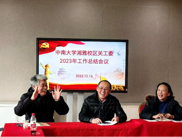 胡凯作2023年工作总结。她表示,2023年,湘雅校区关工委着力做好了八项重点工作。一是坚持以习近平新时代中国特色社会主义思想为指导,全面学习宣传贯彻党的二十大精神,组织相关报告、讲座、党课等20多场;二是召开了4次校区关工委工作会议;三是大力贯彻落实中办国办、教育部党组和学校党委关于加强新时代关工委工作的意见,扎实开展基层组织建设年活动;四是精心组织开展了“读懂中国”、法律知识竞赛等教育活动,取得了较好成绩;五是扎实做好了“五员五导”工作,在“五员”换届中,补充了12名新生力量;六是精心做好了关工工作进社区以及大学生心理健康教育等特色工作;七是以多种方式关爱、表彰、慰问“五老”骨干;八是认真做好宣传报道、关爱基金等常规工作,在校内网站、微信公众号发稿50多篇,收到关爱基金捐款13000多元。最后,胡凯对明年的重点工作提出了思路与要求。
